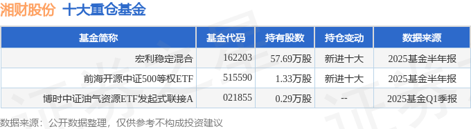 持有湘财股份最多的基金为宏利稳定混合,目前规模为1.85亿元,最新净值1.8298(8月29日),较上一交易日上涨1.36%,近一年上涨31.58%。该基金现任基金经理为邱楠宇。